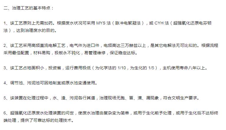 超強氧化還原廢水處理裝置(CYH法)處理各種有機廢水、各種重金屬廢水