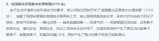 超強(qiáng)氧化還原廢水處理裝置(CYH法)處理各種有機(jī)廢水、各種重金屬廢水